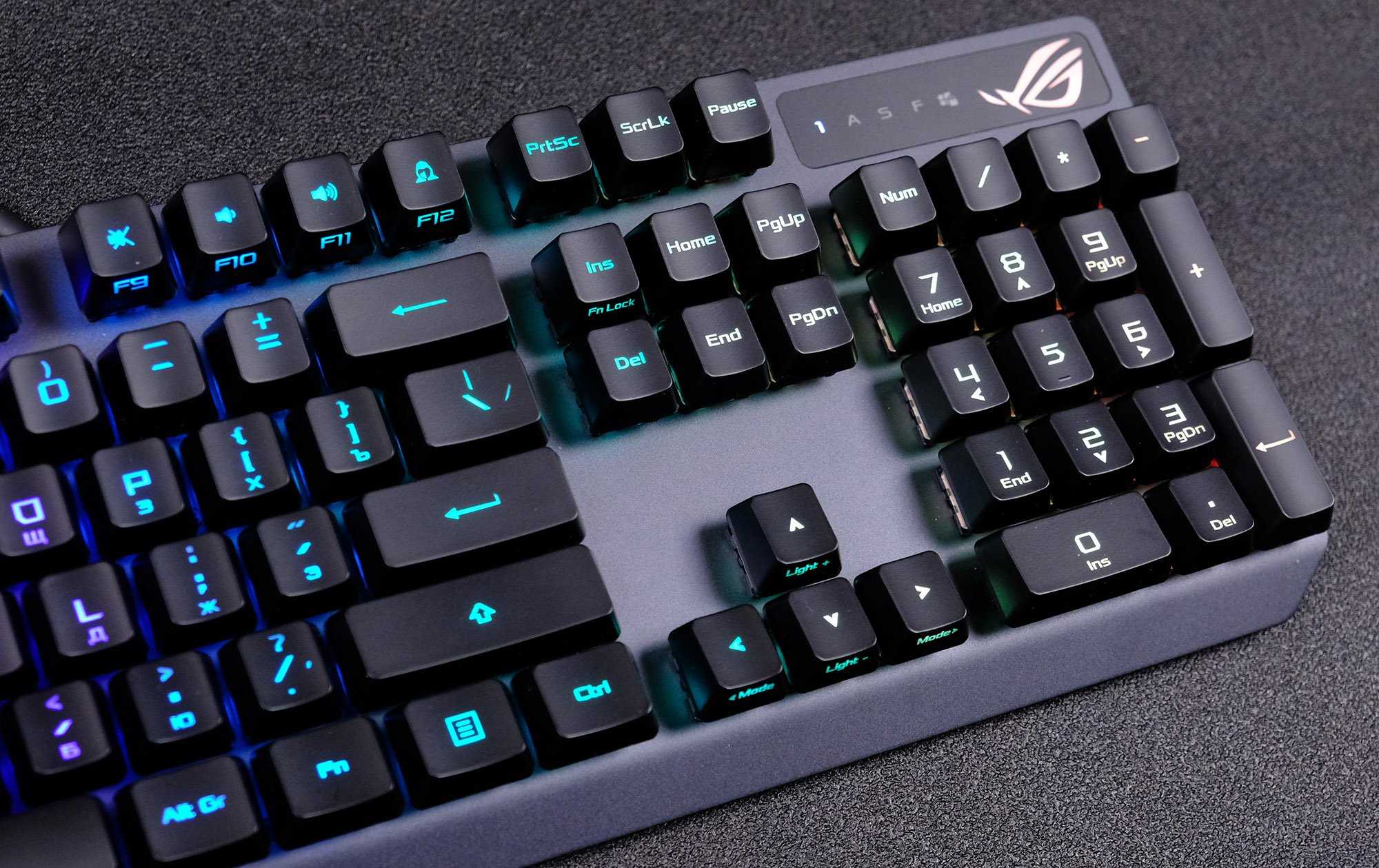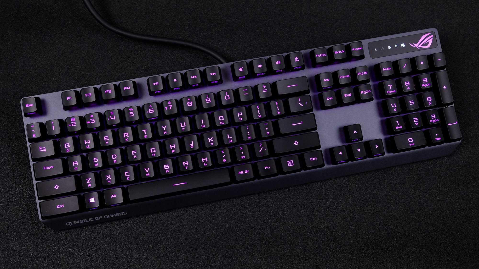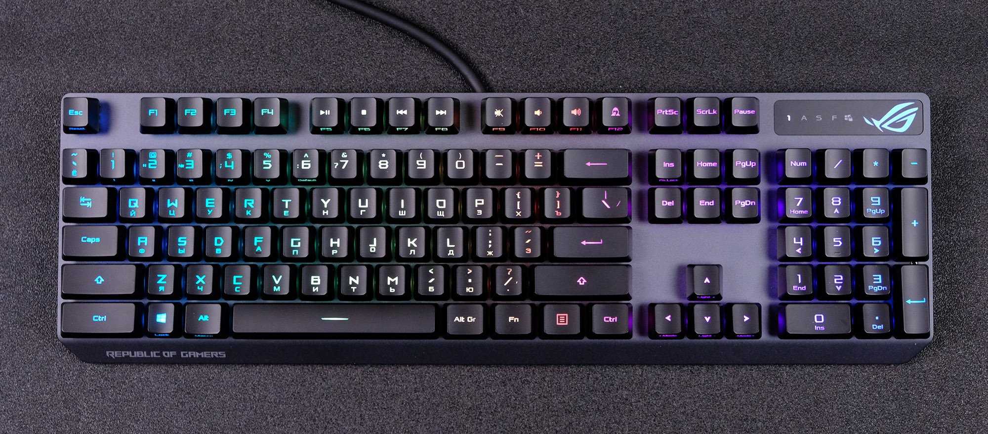 У переключателей чрезвычайно бодрый отскок, который придется весьма кстати в играх, требующих частых нажатий. Щелчки при этом очень тихие, характерные для механических клавиатур с пониженной шумностью, а значит с ROG Strix Scope RX ночному геймингу тоже быть.