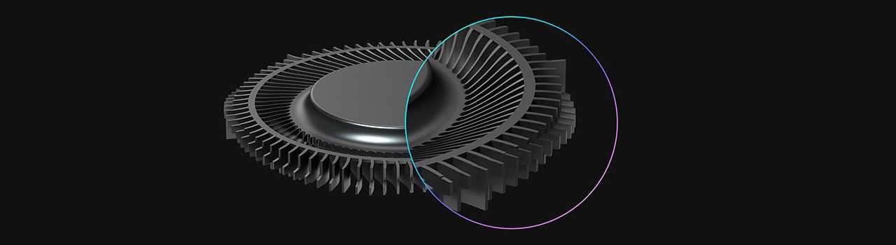 Для вывода тёплого воздуха используются особые, переработанные вентиляторы Arc Flow. Каждый вентилятор насчитывает 84 лопасти, которые сужаются от основания к краям. Также у вертушек есть дополнительные лопасти, расположенные на внешней стороне крыльчатки. Они расставлены волнообразно, что позволяет улучшить воздушный поток, а заодно снизить турбуленцию и шум.