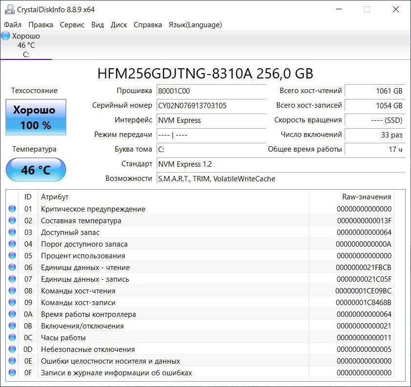 Это — бюджетная модель от Hynix, которая показывает хорошую скорость операций чтения, но по операциям записи показатели весьма скромные для M.2: на практике 600-750 МБ/с. Причём при большом размере тестового файла (16 ГБ) наблюдаются просадки скорости записи до 300-400 МБ/с, что указывает на малый объём быстрого SLC-кэша.