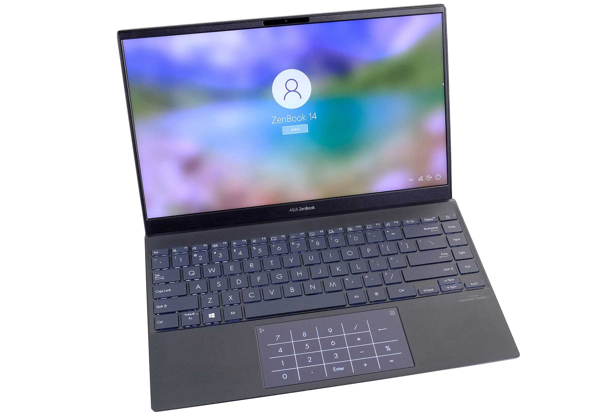 Ноутбук обладает уникальным тачпадом от Asus с цифровой клавиатурой. Нажмите на иконку в верхнем правом углу, и появится LED-подсветка с цифрами. Это удобно при заполнении таблиц или для вычислений в калькуляторе. Более того, даже в таком режиме тачпадом можно пользоваться обычным образом. Доступны нам также свайпы, и обычные нажатия.