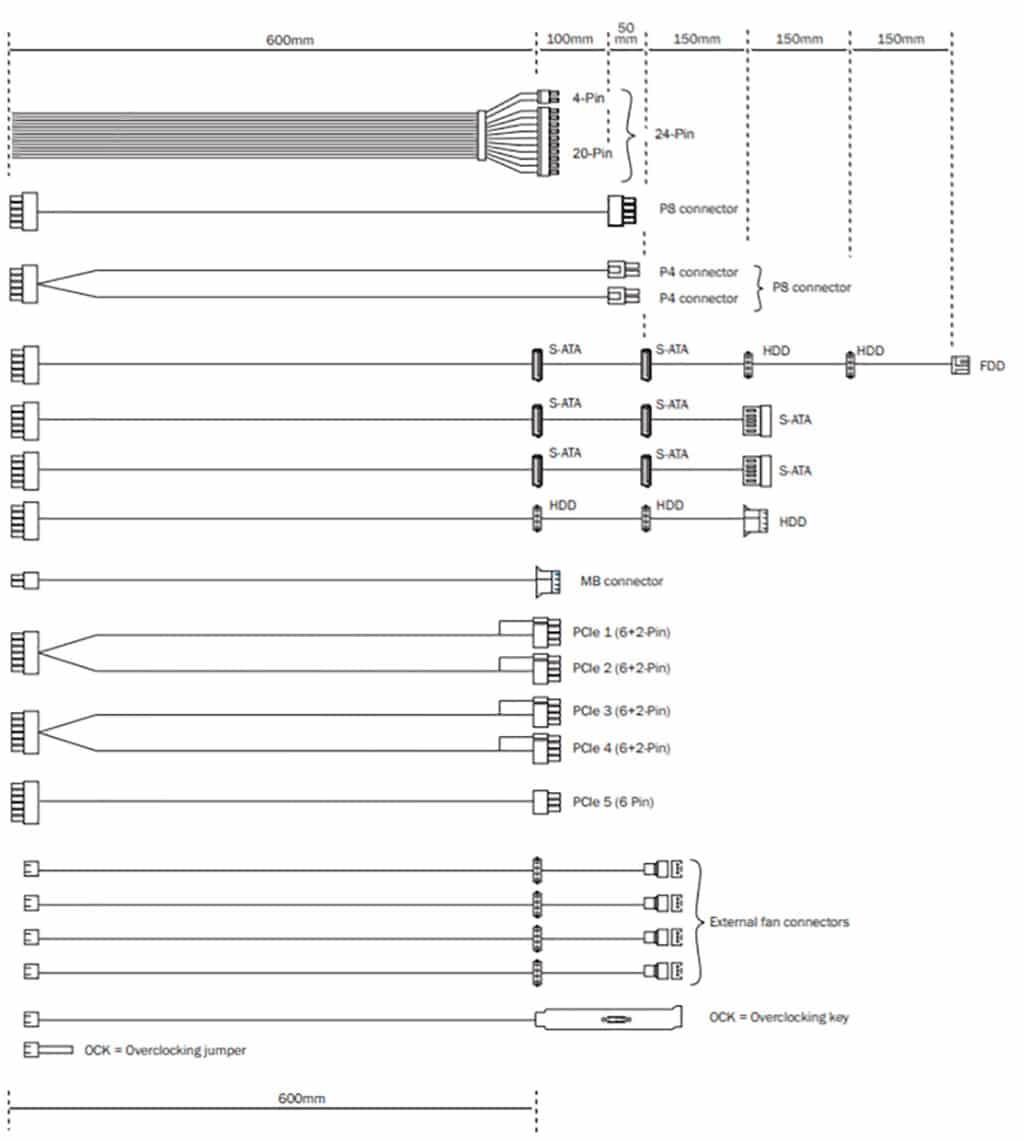 Отдельного упоминания достоин кабель, именуемый MB connector. По сути, это обычный Molex, но без линии 5 В. Он предназначен для дополнительной подпитки материнской платы (преимущественно слотов PCI-Express), но это крайне большая редкость. А прямая надобность – огромная редкость. Имеет смысл подключать только если в системе более двух очень прожорливых карт расширения (считай более двух видеокарт).