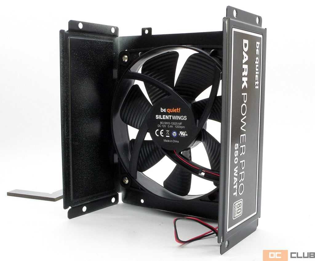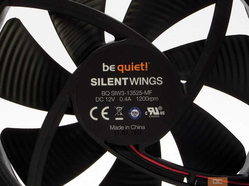 Продувается блок 135-мм вентилятором серии SilentWings 3 на базе гидродинамического подшипника. Обычно для вентиляторов этой серии Be Quiet! заявляет 300 тыс. часов наработки на отказ, что более 34 лет. К сожалению, полностью останавливаться он не умеет, но зато вращается ну очень медленно (~500 оборотов при 80% нагрузки). Напомню, у вентилятора предусмотрено антивибрационное крепление по всему периметру рамки.