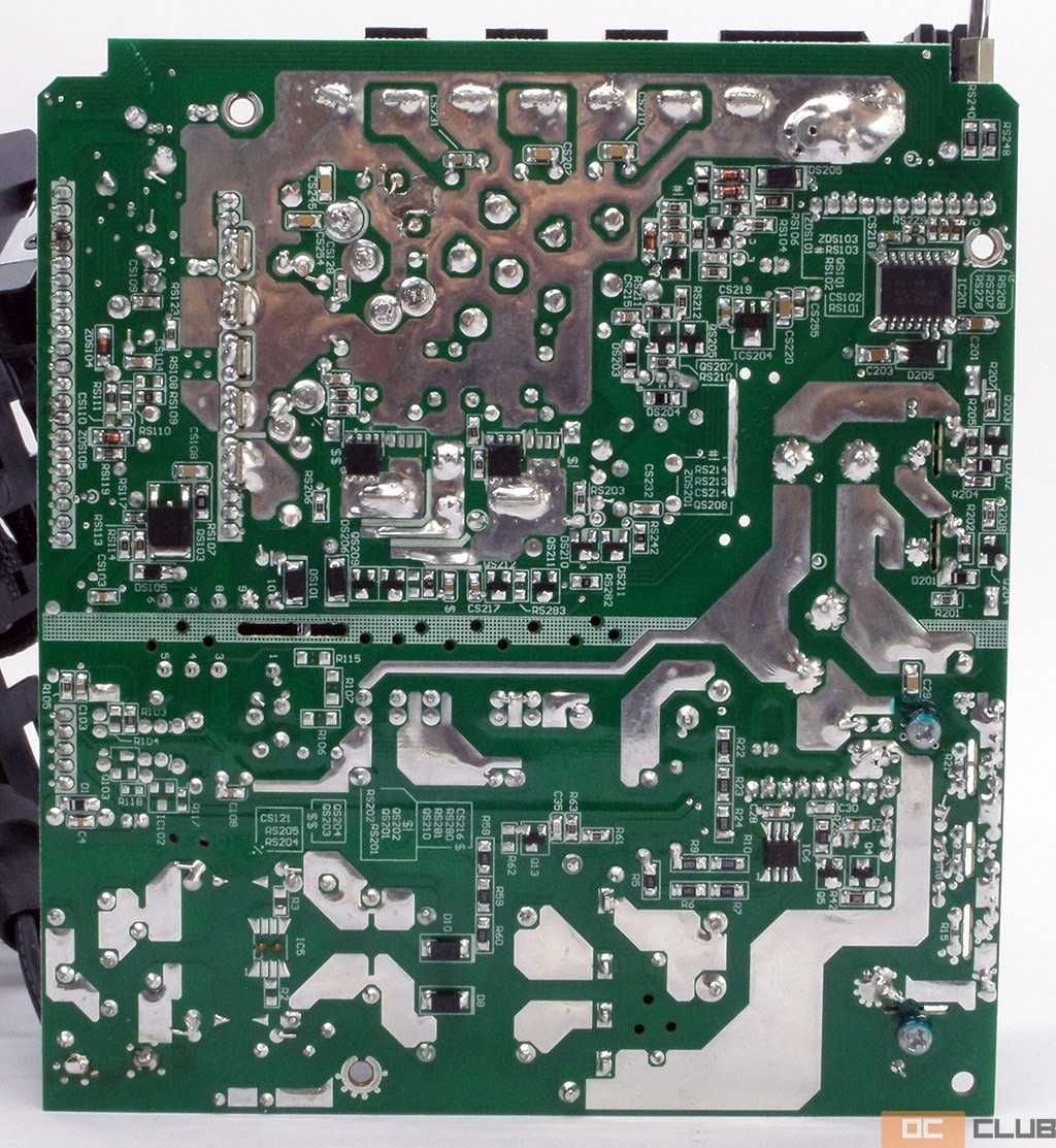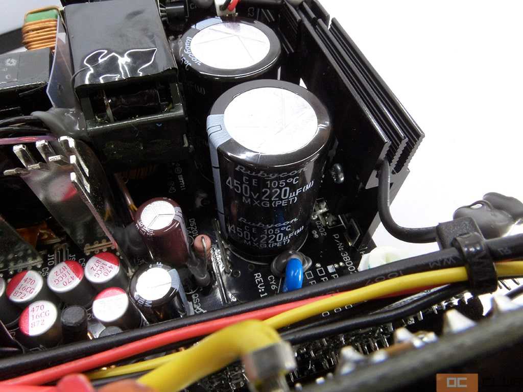 Если честно, 440 мкФ суммарной ёмкости основных конденсаторов для флагманского блока – ну такое. Да, это близко к номинальной мощности, но у решений такого класса соотношение мощности к ёмкости конденсаторов хорошо бы 1 к 1. Кроме того, 550 ватт мощности – не так и много. Блок почти всегда будет работать при как минимум 50% нагрузки. Короче говоря, ёмкостью конденсаторов он не сможет долго компенсировать «мигание» света.