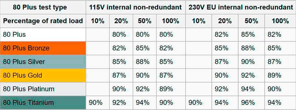Для определения КПД, что является одной из ключевых характеристик блока питания, сравнивается мощность на входе и мощность на выходе простым бытовым ваттметром. Путём несложных вычислений и определяется коэффициент полезного действия. Данный метод измерения, естественно, имеет определённую погрешность. Она составляет 1-2%. Поэтому иногда кривая КПД может не до конца отвечать соответствующему стандарту 80 PLUS.