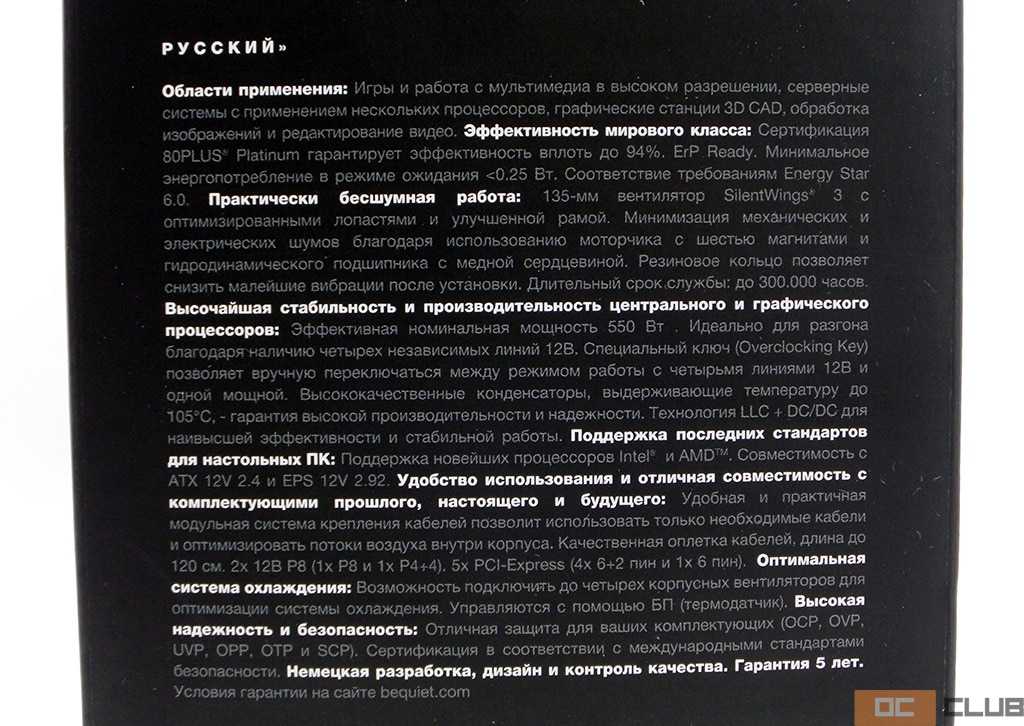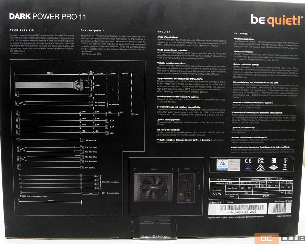 Be Quiet! Dark Power Pro 11 550 Вт получил полный спектр защит, характерных для блоков потребительского класса, а именно: