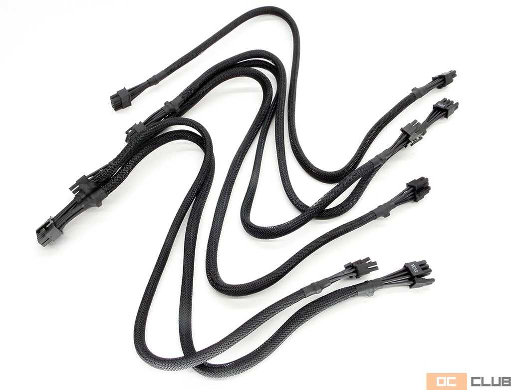 - Два двойных кабеля питания PCI-E, на каждом один коннектор 6+2 пин (всего 4 шт) – 60 см;