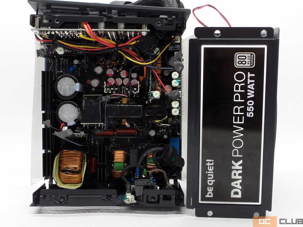 В целом, Be Quiet! Dark Power Pro 11 550 Вт внутри сделан ладно. Схематика хорошая, по компонентам экономии нет. Суматохи вносит неотключаемая 24-pin колодка питания и ряд кабелей, обеспечивающих работу “оверклокерского ключа”, но в целом все достойно.