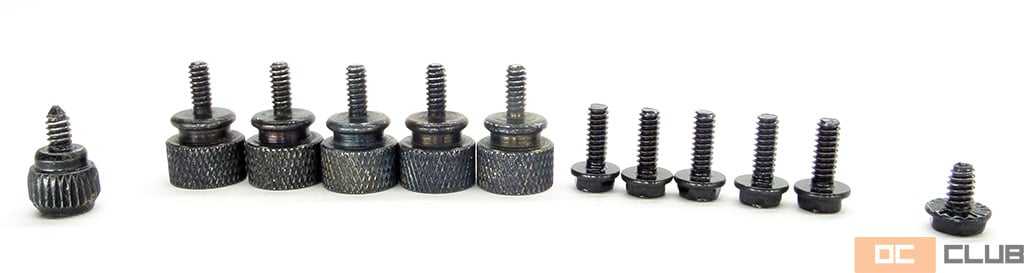 Конструктивные особенности Be Quiet! Dark Power Pro 11 таковы, что для монтажа требуются удлинённые винты. Также производитель расщедрился на натурально огромные винты с накатанной головкой (на фоне обычный для масштаба), однако на практике применить их получится не с каждым корпусом. С барского плеча сыпанули винтов с запасом в один, а не под расчёт.