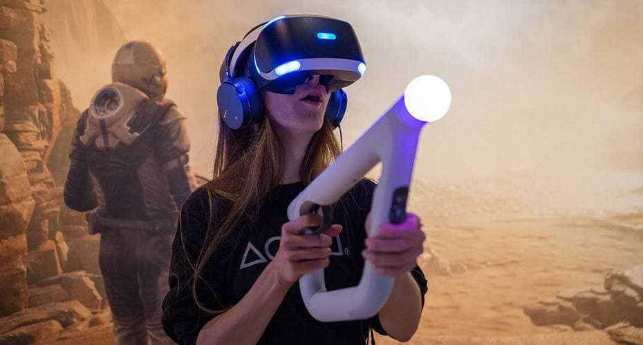 - PS4 + гарнитура PSVR.PlayStation VR стала востребованной благодаря популярности консолей от Sony. Если у вас есть PS4, вы можете докупить PSVR. Обойдется гарнитура приблизительно в 400 баксов. Чек не маленький, но качество виртуальной среды того стоит.