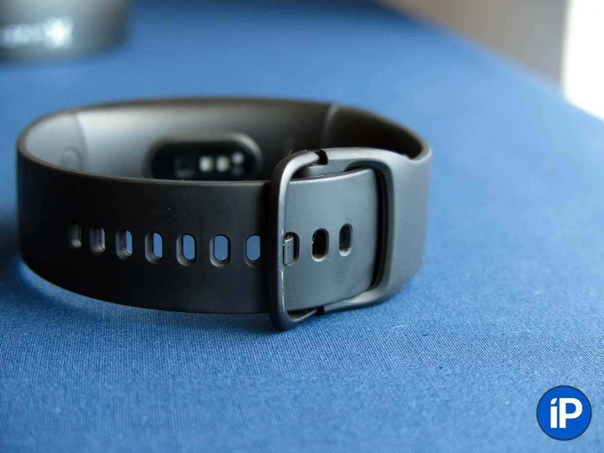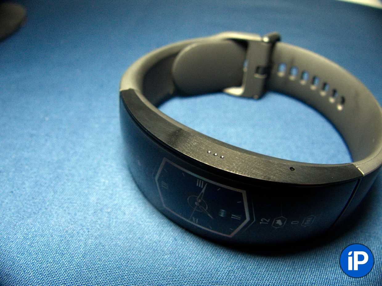 Устройство оснастили ярким цветным IPS-экраном диагональю 1,14 дюйма, информация на котором неплохо читается даже при интенсивном солнечном свете. Ниже экрана находится сенсорная металлическая кнопка, одновременно являющаяся электродом для снятия ЭКГ. Еще два электрода расположены на задней части корпуса, рядом с датчиком ЧСС и контактами для зарядки с помощью магнитного кабеля.